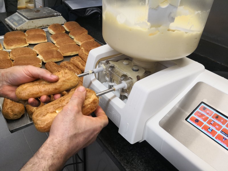 Kompaktowe urządzenie do nadziewania, wtryskiwania, nakładania warstw i dekoracji. Idealne do pączków, eklerów, ciastek.