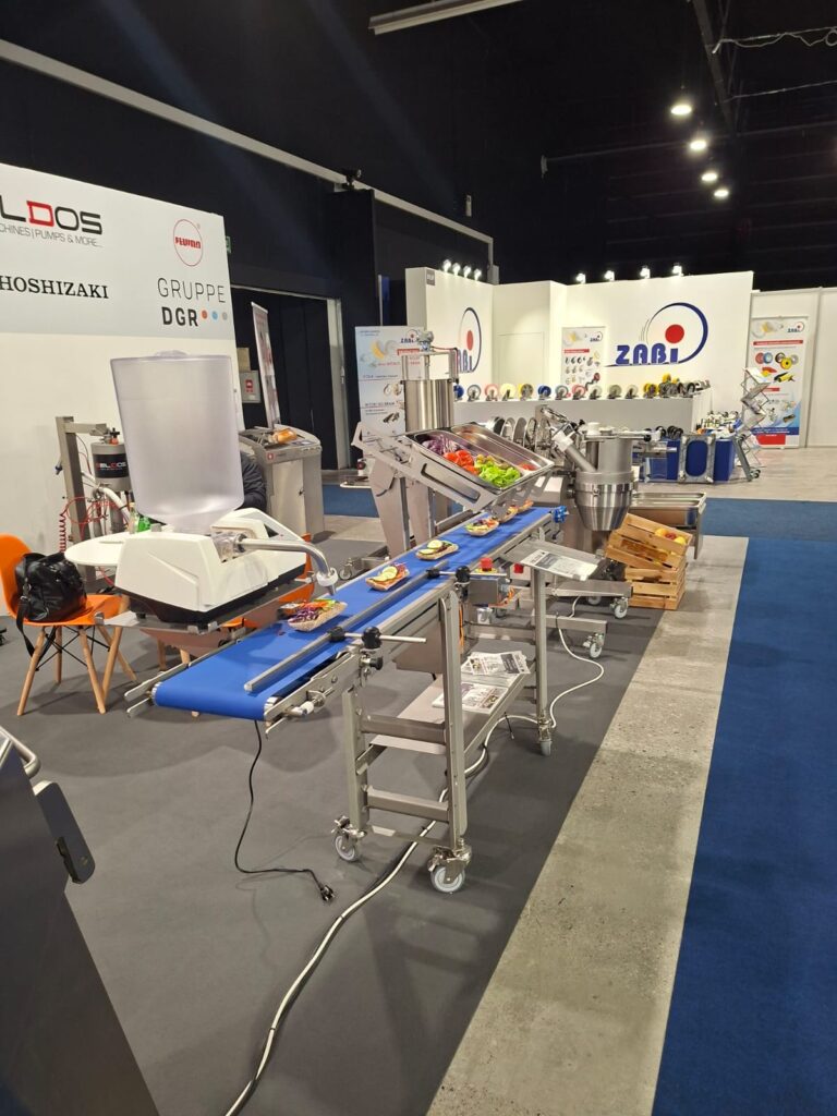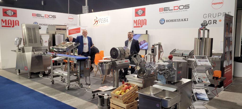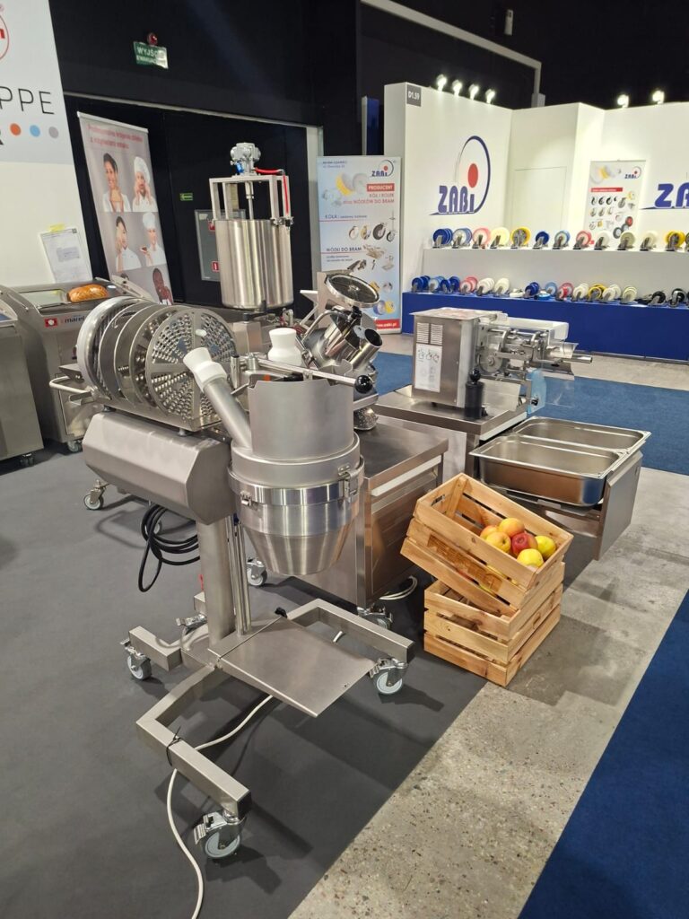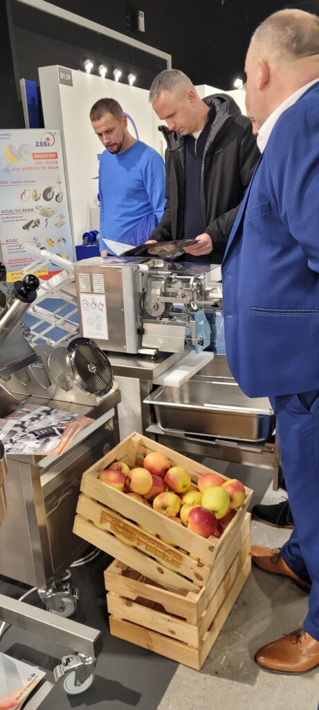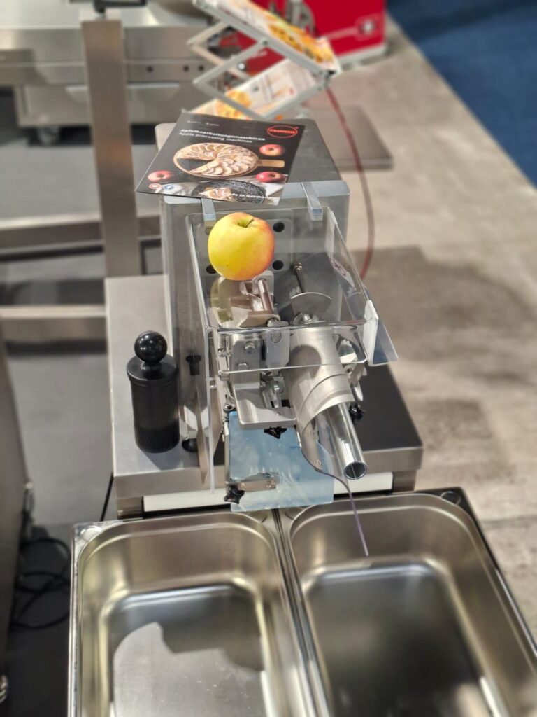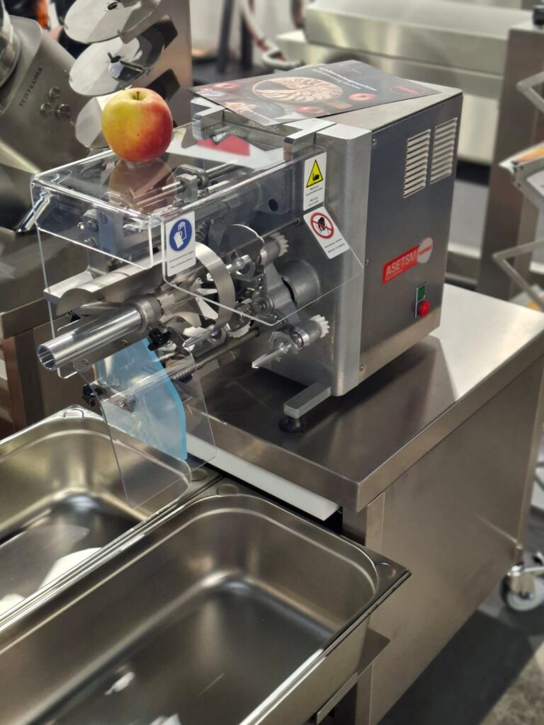 - FEUMA: Użyliśmy kompaktowego urządzenia TED do szybkiego i precyzyjnego krojenia owoców i warzyw, a także obieraczki do jabłek ASETSM do pokazania skutecznej obróbki jabłek do produkcji szarlotki i innych ciast.