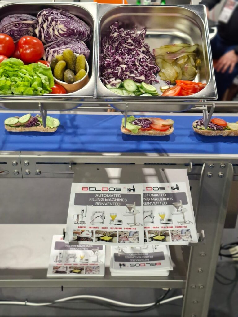 - BELDOS: Pokazaliśmy, jak precyzyjnie dozować kremy, musy, nadzienia owocowe, ciasta i masy, a także nowoczesną linię produkcyjną do kanapek BELVEYOR.